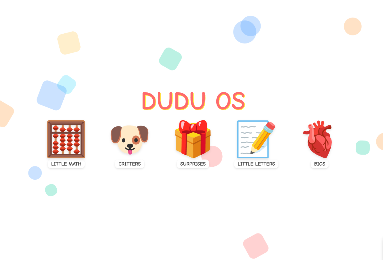 Bem-vindo ao DuduOS v1.0, o principal ambiente educativo projetado pela Gamago Scientifica. Junte-se ao Dudu em uma jornada colorida com números, animais e surpresas amigáveis! Um sistema feito sob medida para o desenvolvimento infantil... ou quase isso.